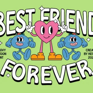 Introducing Groovy Cartoon Display Font – the perfect balance between playful and professional. This font is a versatile choice for a wide range of design projects. With its unique blend of fun and sophistication, it is sure to add a touch of creativity to your creative ideas.